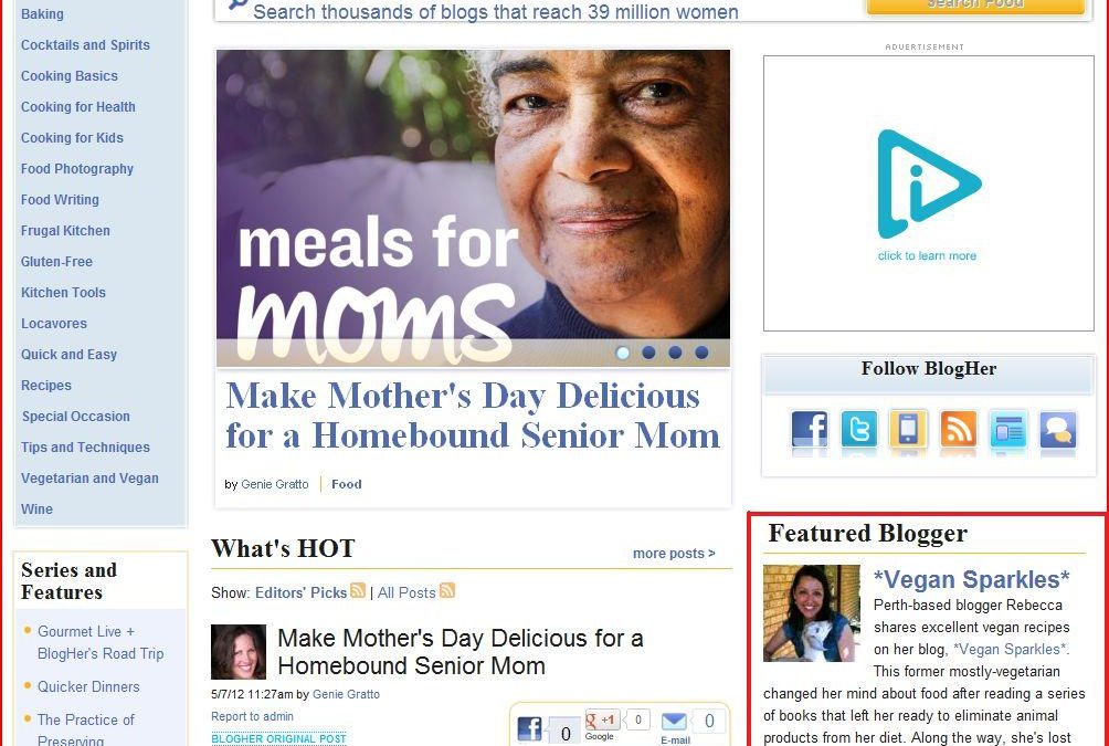 Featured Blogger on BlogHer.com! by Vegan Sparkles | May 8, 2012 | 0 commentsSubmit a Comment Cancel replyYour email address will not be published. Required fields are marked *Comment *Name * Email * Website Save my name, email, and website in this browser for the next time I comment. Δ